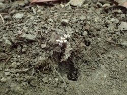 最初の発見は「セミノハリセンボン」です。白くてチクチクしたような1本1本が子実体です。本当にセミから出ていて驚きです。そのあとも発見が続きます。「ツクツクボウシタケ」を発見しました。