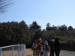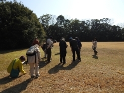 多目的広場に到着しました。ノウサギのフンがたくさん見られます。体の大きさによってフンの大きさも違うようです。ノウサギは一度目の排泄物は食べてしまいます。栄養分が残っているため食べてしまうそうです。ここに落ちているフンは2回目、栄養分を取り込んだ後のカスカスになったものになります。そんな話を聞きながら、参加者の皆さんも思い思いに痕跡探しをしました。