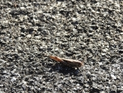 クラフトハウスの手前で生きものを発見!春のような日差しに誘われて出てきたようです。皆さん、ご存じですか?変身ヒーローのモデルです!