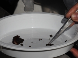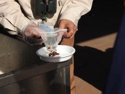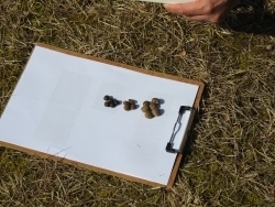 タヌキの溜めフンです。先月の体験教室でも見学したところです。今日はそのフンを持ち帰ってどのようなものが含まれているのかを見てみることにしましょう。