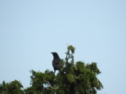 その後、車道脇を歩いているときに、「ヒュー」という笛の音のようなさえずりが聞こえました。トラツグミです。それと一緒にホトトギスのさえずりも聞こえました。とても珍しい共演でした。
