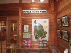 大久野島ビジターセンターでは、「大久野島のウサギ写真展」を館内のレクチャールーム内で行っています。